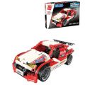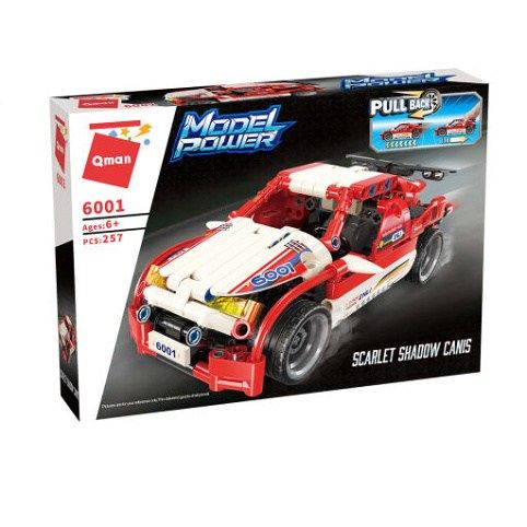 Stavebnice závodní auta v červeno-bílé barvě s reklamními polepy. Auto je natahovací, potáhněte jej směrem dozadu a poté pusťte! Vyrobeno z netoxického ABS plastu, v balení 257 dílků.