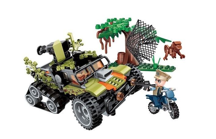 Auto vybavené koly i pásem, které jednoduše projede i složitým terénem. Je připraveno vystřelit sítě, dokáží chytit některá zvířata v džungli? Vyrobeno z netoxického ABS plastu, v balení 261 dílků.