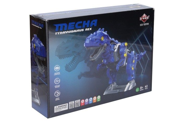 Stavebnice RC dino robot Mecha T-REX. Rozměry složeného robota 21,6x7,3x11,7 cm. Frekvence 2,4 GHz. Vydává zvukové efekty. Ovládání - levé tlačítko - pohyb dopředu, pravé tlačítko - pohyb dozadu, prostřední tlačítko - zvukové efekty. Schéma na sestavení na obalu. Pohyblivý ocas a hlava. Sada obsahuje 41 dílů. Robot - 2xAAA baterie, nejsou součástí. Ovladač - 2xAAA baterie, nejsou součástí.
