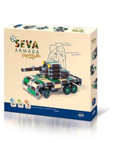 Stavebnice ve vojenských maskovacích barvách pro malé dobrodruhy a bojovnice. Postav děla, tanky, obrněné vozy nebo jinou vojenskou techniku podle svojí fantazie. Pevnost výtvorů můžeš prověřit hrou přímo v přírodě, kde si užiješ spoustu zábavy. Stavebnice SEVA Armáda – bojová vozidla nahrazuje stavebnici SEVA Army 1 a doplňuje novou kolekci SEVA Armáda společně s novými stavebnicemi Letectvo (dříve Army 2) a Speciální jednotka (dříve Army mini 1 a 2). Velkou výhodou stavebnic SEVA je její kompatibilita a možnost neomezené kombinace s ostatními stavebnicemi. Stavebnice obsahuje 436 dílů. Pokud byste si nevěděli rady, součástí balení je také podrobný návod ke skládání.