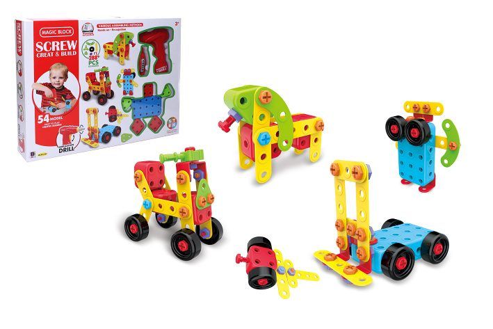 Sada obsahuje 288 dílků, elektrický šroubovák.