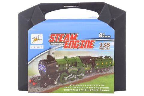 Kovová šroubovací stavebnice vlak. Součástí balení je 338 dílků, šroubovák, klíč a návod k použití. Rozměry balení cca 23 x 20 x 7 cm. Věk 8+