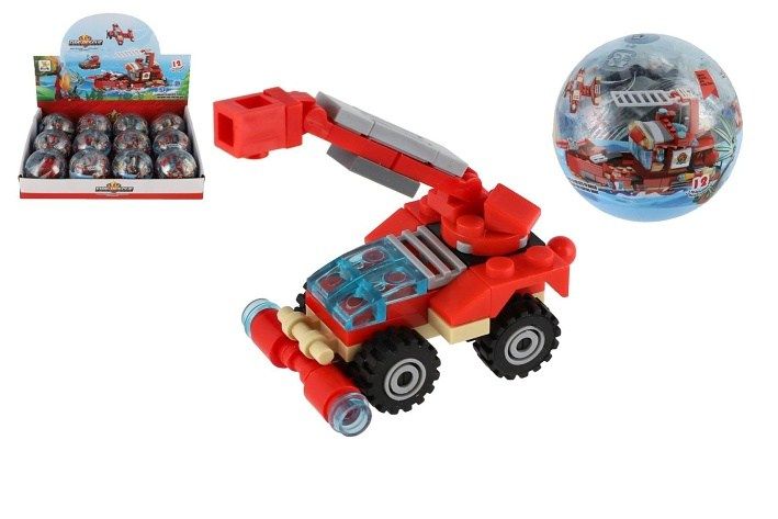 Stavebnice zásahová vozidla hasiči plast 7cm mix druhů v plastové kouli
