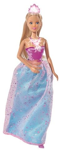 Panenka Steffi jako magická princezna. Zatlačením na její ruku rozsvítíte její náramek i korunku. Výška panenky 29 cm.