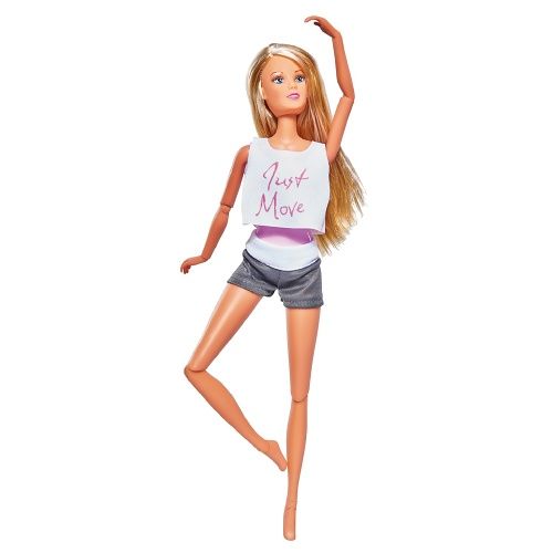 Panenka Steffi ve sportovním oblečení s plně kloubovým tělem, 14 kloubů nabízí jakýkoli druh pohybu a polohy. Velikost panenky 29 cm.