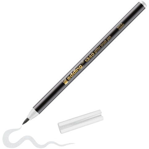 Pruhledný trpytivý brushpen edding 1340 s inkoustem na bázi vody dodá vašemu textu slavnostní perletový vzhled. Tímto transparentním brushpenem nanesete na výtvory kreslené klasickými fixami decentní trpytky. Využijete pro dekorativní psaní na pohlednice, pránícka, jmenovky i vzkazy. Jemný glitr je videt i na cerném papíre. Flexibilní štetcový hrot o šírce stopy 1-6 mm. Ukládejte nejlépe hrotem dolu. Vyrobeno v Nemecku.