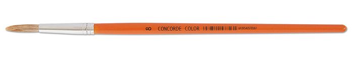 Školní kulatý štětec Color č. 8. Štětec s ovčím vlasem a dřevěnou barevnou rukojetí, konec rukojeti je pro vyšší bezpečnost zaoblený.
