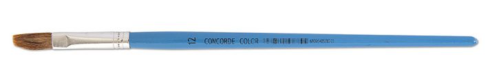 Školní plochý štětec Color č. 12. Štětec s ovčím vlasem a dřevěnou barevnou rukojetí, konec rukojeti je pro vyšší bezpečnost zaoblený.