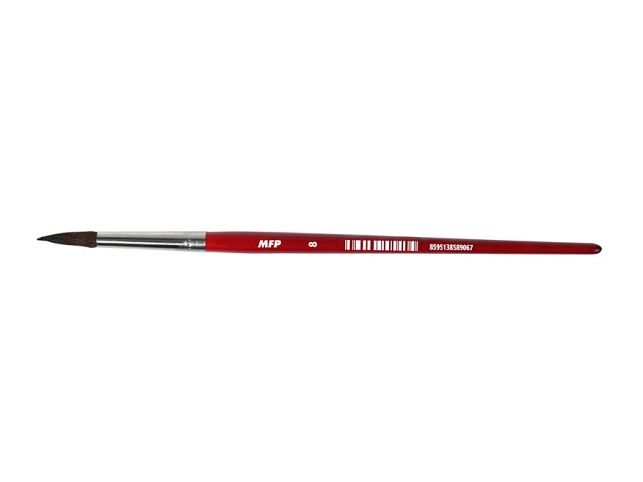 Školní štětec kulatý - vhodný do hodin výtvarné výchovy, ale i pro domácí kreativní tvoření - velikost: 8 - materiál: ovce + nylon - použití: vodovými a temperovými barvami, k vykreslování různých ploch na papíře, k malování - barva: červená Uvedená cena je za 1 ks. Štětce jsou uloženy v papírové krabičce po 12 ks.