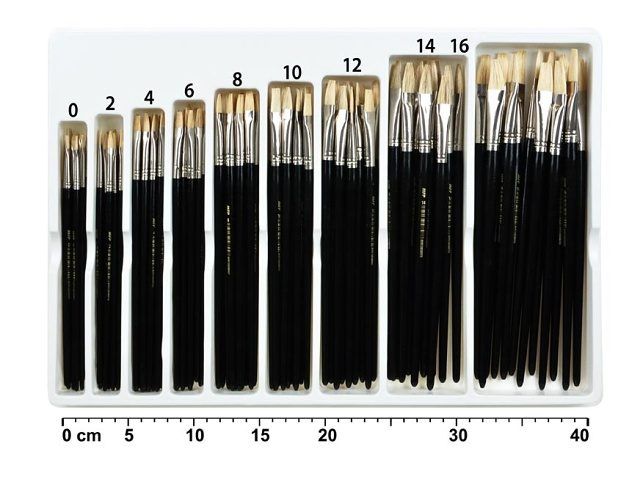Sada plochých štětců 108 ks - štětce jsou vhodné do hodin výtvarné výchovy, ale i pro domácí kreativní tvoření - velikost: mix 9 různých velikostí - použití: vodovými a temperovými barvami, k vykreslování různých ploch na papíře, k malování - štětiny štětce jsou obaleny plastovým krytem - barva: černá Uvedená cena je za 1 balení, ve kterém je 108 ks. Štětce jsou uloženy v plastové krabičce s přihrádkami.