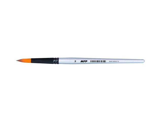 Štětec kulatý s jemným syntetickým vlasem tvarovaným do špičky a dřevěnou rukojetí. Díky syntetickým vláknům usnadňuje roztírání barev a dobře drží tvar. Je méně náchylný k poškození barvami a ředidly než štětec přírodní. Snadno se udržuje v čistotě. Hodí se jak pro školní využití, tak i pro různé malířské techniky. Ideální pro malování detailů, linek nebo vybarvování. Štětiny jsou chráněny plastovou krytkou. Velikost: 14 Barva: stříbrná/černá Materiál: syntetické vlákno POUŽITÍ: Na malbu akrylovými a akvarelovými barvami. Štětce jsou uloženy v papírové krabičce po 12 ks. Uvedená cena je za 1 ks.