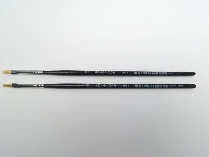 Plochý školní štětec pro školní účely. Plochý štětec č. 0, dřík černě lakovaný, toulec chromovaný. Dřík dřevěný, toulec kovový, vlas „ prase “. Velikost: 0, délka vlasu: 8 mm, délka toulce: 30 mm, délka dříku: 145 mm. Celková délka štětce je 183 mm.
