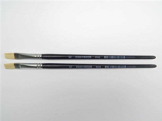 Plochý školní štětec pro školní účely. Plochý štětec č. 10, dřík černě lakovaný, toulec chromovaný. Dřík dřevěný, toulec kovový (stříbrný), vlas „prase“. Velikost: 10, šířka vlasu: 8 mm, délka vlasu: 15 mm, délka toulce: 40 mm, délka dříku: 170 mm. Celková délka štětce je 225 mm.