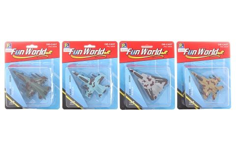 Kovová stíhačka o rozměrech cca 11 x 8 cm (dle druhu). Rozměry balení cca 15 x 19 x 4 cm. Věk 3+