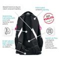 Kvalitní, ergonomicky tvarovaný odlehčený studentský batoh s 3D zádovým systémem. Parametry školního batohu: Rozměr: v 46 cm x š 34 cm x h 20 cm. Hmotnost 0,8 kg. Objem: 25 l. Nosnost: 8 kg. Vlastnosti školního batohu: Polstrování je z prodyšného materiálu. Na bocích batohu jsou kapsy na láhev na pití. Skládá se ze 3 komor, v přední kapse je organizér na drobné předměty, klíče apod. Postranní stahovací přezky na ztenčení prázdného batohu. Dvě postranní kapsy na lahev. Bezpečnostní prvky na všech stranách batohu. Polstrované ramenní popruhy. Hrudní pás pro lepší rozložení váhy batohu na zádech. Zpevněné dno. Voděodolný materiál - 100% polyester.