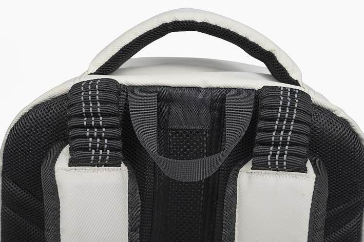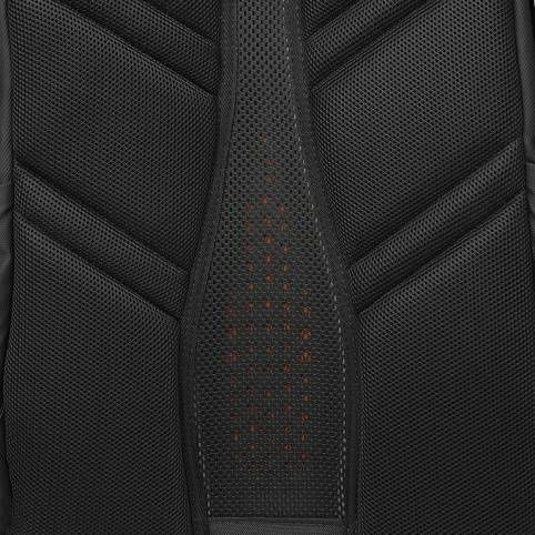 - ZÁDOVÝ SYSTÉM – síťovaný zádový panel, prodyšný a pohodlný, chrání páteř a ulevuje od tlaku způsobeného váhou
