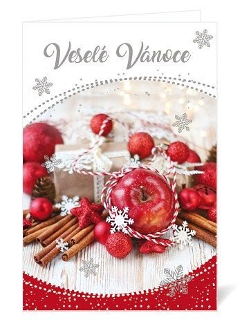 Přání o rozměru 170x110mm je zdobeno stříbrnou ražbou a je dodáváno v sáčku s obálkou. Vnitřní text: "Přejeme Vám i všem Vašim blízkým příjemné prožití vánočních svátků a v novém roce pevné zdraví a mnoho štěstí a spokojenosti."