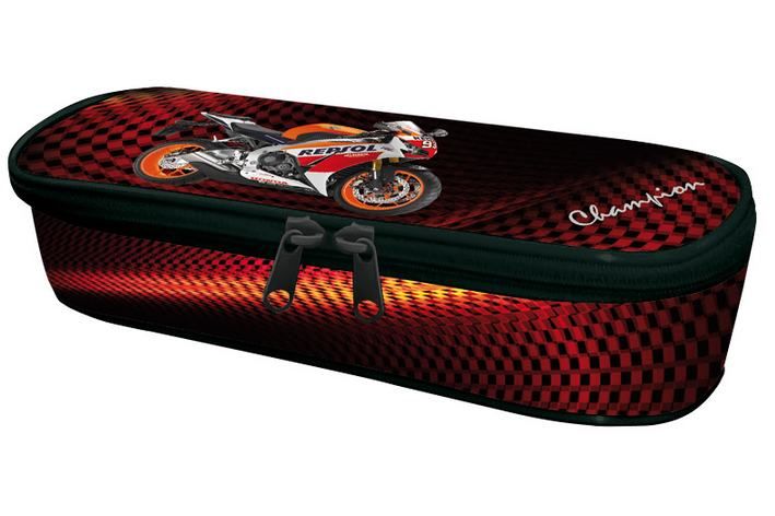 Školní etue zaobleného tvaru, prázdná, se 4 poutky na tužky, o rozměru 210 x 80 mm.