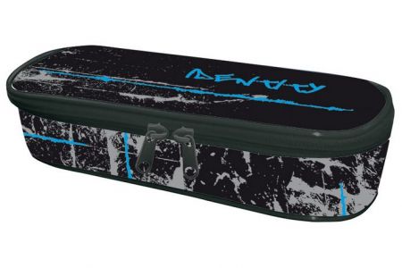 Školní etue zaobleného tvaru, prázdná, se 4 poutky na tužky, o rozměru 210 x 80 mm.