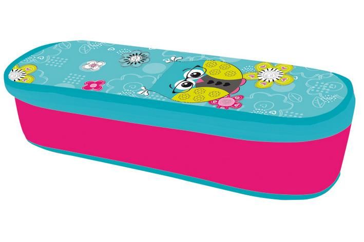 Školní etue zaobleného tvaru, prázdná, se 4 poutky na tužky, o rozměru 210 x 80 mm.