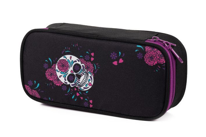 Školní pouzdra nebo takzvané etue jsou ideálním doplňkem pro větší školáky a studenty. Uvnitř pouzdra je větší komora pro uložení tužek a školních potřeb Vnitřní klopa penálu má na každé straně 5 pevných gumiček Na vnitřní straně víka je praktická kapsa na zip, na které jsou další 2 malé kapsičky pro uložení drobností Rozměr etue je 21,5 x 10 x 5,5 cm.