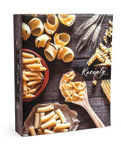 Kniha na recepty A5. Karis blok je linkovaný se záložkami na různé druhy receptů.