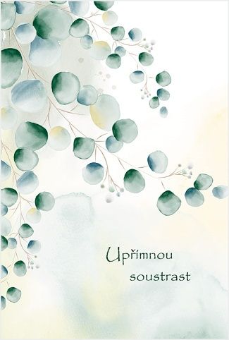 Vnitřní text: "Dny plynou jak tiché řeky proud, jen bolest v srdci trvá a nedá zapomenout. " . Přání o rozměru 115 x 170 mm je tištěno na strukturovaném papíře. Je dodáváno v sáčku s obálkou.