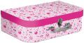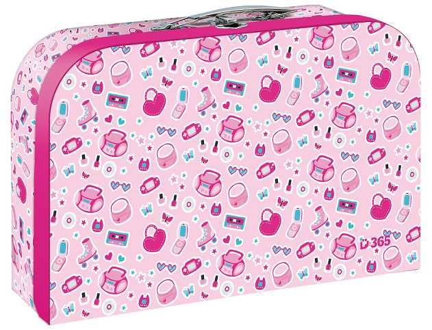 Vnější strana je pokryta potištěným papírem s dětskými motivy sladěnými se školními aktovkami a batohy. Rozměr: 35 x 22,5 x 10 cm