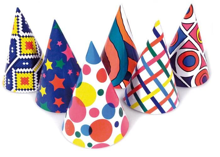 Veselé párty kloboučky o průměru 10cm, výška 16cm, balení 6ks mix.