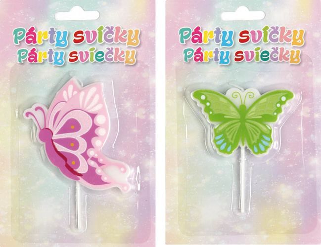 svíčka ve tvaru motýlka 5-8cm se zápichem různé barvy