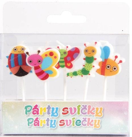 set 5 svíček ve tvaru motýlků v plastové krabičce