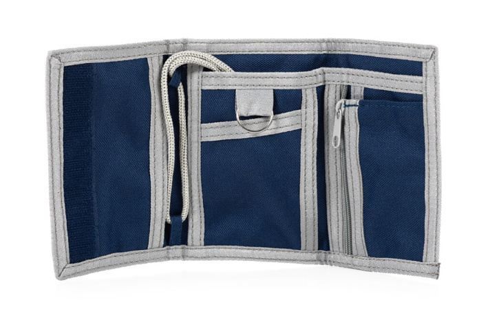 Praktická peněženka na krk má na vnější straně průhlednou kapsičku na průkazy či karty. Uvnitř je praktický organizér s 5 kapsičkami na bankovky a drobnosti, kapsička na zip na mince a kovový kroužek na klíče. Peněženka se zavře suchým zipem a zavěsí na krk látkovou šňůrkou.