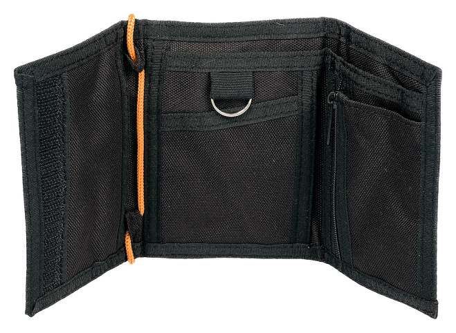 Peněženka se snadno uzavře suchým zipem a pohodlně se nosí na krku díky pevné látkové šňůrce.