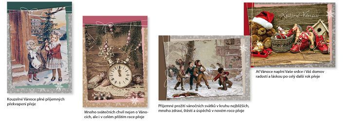 Mix vánočních pohlednic s textama na zadní straně 105x155m.