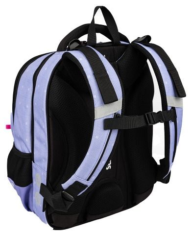 Ergonomický batoh, který roste s dítětem (Adjustable system) 3D anatomický zádový panel Systém Air Flow a prodyšné polstrování 3 prostorné komory a přední kapsy Anatomicky tvarované nastavitelné popruhy Vodoodpudivý materiál Odolné dno s plastovými nožičkami Reflexní pásky Hrudní pás Nově navíc skrytá kapsička na cennosti pod horním madlem, nový vylepšený nastavitelný posuvník hrudního pásu, nový popruh na přední straně pro uchycení např. mikiny cestou domů ze školy Rozměry: výška 40 cm, šířka 30 cm, hloubka 20 cm Hmotnost: cca 1 kg Nosnost: 7 kg Objem: 20 l
