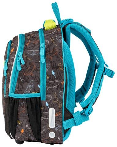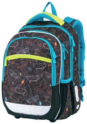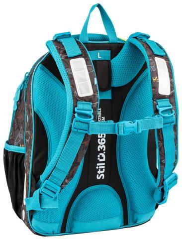 Školní batoh VHODNÝ PRO 1 - 4. třídu. Kvalitní, ergonomicky tvarovaný odlehčený školní batoh je vybaven reflexními prvky a anatomicky tvarovanými zády s pevnou konstrukcí. Školní batohy Stil jsou ověřeny odborníky. Parametry školního batohu: Rozměr: výška 40 cm, šířka 30 cm, hloubka 20 cm. Hmotnost: 0,9 kg. Nosnost: 7 kg. Objem: 20 l. Vlastnosti školního batohu: STIL ADJUSTABLE SYSTÉM: nastavitelný systém zad se třemii stupněmi pro optimální usazení batohu na zádech podle výšky a věku dítěte. Batoh, který roste s dítětem. 3D ZÁDOVÝ SYSTÉM: batoh perfektně sedí na zádech. Anatomický zádový panel se přizpůsobí páteři dítěte a systém Air Flow a prodyšné polstrování umožní cirkulaci vzduchu a příjemné nošení. Hrudní pás s kvalitní přezkou zajistí dobré usazení aktovky na zádech dítěte. BEZPEČNOST: bezpečnostní prvky jsou velmi důležité, proto je aktovka vybavena reflexními pásky na všech stranách batohu, které zaručí lepší viditelnost a bezpečnost dítěte ve tmě. VNITŘNÍ USPOŘÁDÁNÍ: Skládá se ze 3 prostorných komor opatřených pevnými zipy a přední kapsy pro uložení drobných předmětů. Pevná kontrukce a voděodolné dno s plastovými nožičkami. AIR FLOW: prodyšné pohodlně tvarované polstrování zadního panelu. Anatomicky tvarované nastavitelné popruhy pro pohodlné nošení. Hrudní pás pro lepší rozložení váhy školního batohu na zádech. "Pravý skejťák uznává skateboarding jako životní styl, nejen jako sport. Skejťák chce překonat sám sebe a říká si: „Jeď na doraz. Dej tomu všechno. A hlavně si to užij!“".