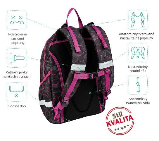 - Objem: 28 l VLASTNOSTI školního batohu