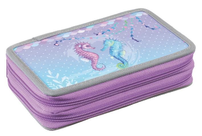 Dvoupatrové penály obsahují v prvním patře 8 gumiček na pastelky, 2 gumičky na tužky a jednu větší na pero, dále gumičky na ořezávátko a gumu a kapsičku na drobnosti, uzavíratelnou na patent. Ve druhém patře penálu je umístěna průhledná kapsička na rozvrh a tajné dokumenty a 9 pevných gumiček na psací potřeby různých velikostí. Dokonale barevně sladěný design s aktovkou či batohem je samozřejmostí.