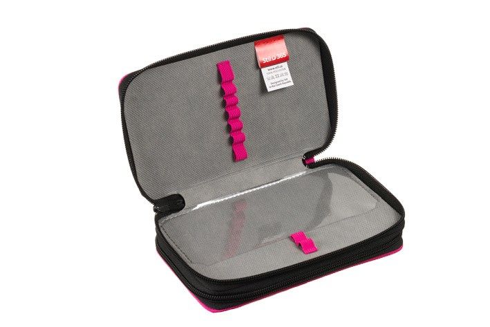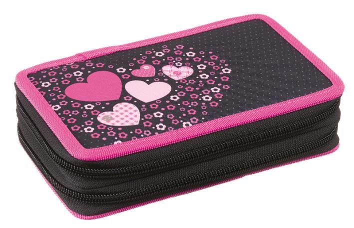 Dvoupatrové penály obsahují v prvním patře 8 gumiček na pastelky, 2 gumičky na tužky a jednu větší na pero, dále gumičky na ořezávátko a gumu a kapsičku na drobnosti, uzavíratelnou na patent. Ve druhém patře penálu je umístěna průhledná kapsička na rozvrh a tajné dokumenty a 9 pevných gumiček na psací potřeby různých velikostí. Dokonale barevně sladěný design s aktovkou či batohem je samozřejmostí.