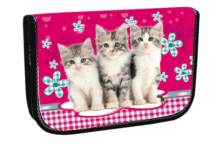 Školní penál jednopatrový, prázdný s dvěma chlopněmi, o rozměru š.195 x v.35 x h.130mm