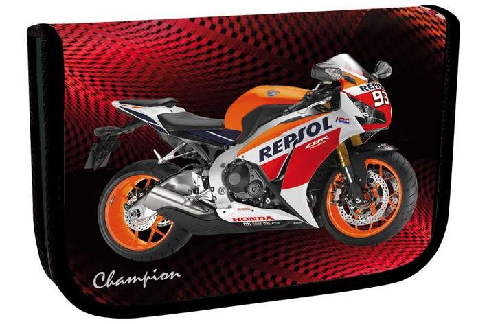 Školní penál jednopatrový, prázdný s dvěma chlopněmi, o rozměru š.195 x v.35 x h.130mm