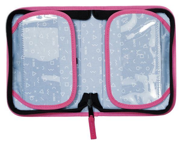 Chlopně mají na vnější straně průhlednou kapsičku na rozvrh či jiné malé dokumenty, na vnitřní straně je pak nová síťovaná kapsička pro uložení drobností. Dokonale barevně sladěný design s aktovkou či batohem je samozřejmostí.