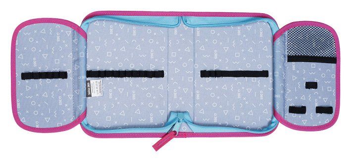 Chlopně mají na vnější straně průhlednou kapsičku na rozvrh či jiné malé dokumenty, na vnitřní straně je pak nová síťovaná kapsička pro uložení drobností. Dokonale barevně sladěný design s aktovkou či batohem je samozřejmostí.