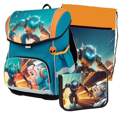 1. Školní aktovku - kvalitní, ergonomicky tvarovaná odlehčená školní aktovka je vybavena reflexními prvky a anatomicky tvarovanými zády s pevnou konstrukcí.