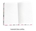 Praktický linkovaný zápisník o rozměru 12 x 19 cm. Desky bloku jsou upraveny speciální laminací s hedvábným efektem, díky kterému jsou velmi příjemné na dotek. 128 stran