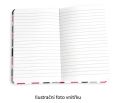 Praktický linkovaný zápisník o rozměru 10 x 13 cm. Desky bloku jsou upraveny speciální laminací s hedvábným efektem, díky kterému jsou velmi příjemné na dotek. . 128 stran