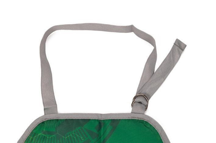 Zástěrka na výtvarnou výchovu se navléká nastavitelným popruhem přes hlavu a zaváže se kolem těla pomocí šňůrek. Je vyrobena z omyvatelného polyesterového materiálu, který se lehce udržuje. Na přední straně jsou 2 kapsy na výtvarné pomůcky. Hlavní část zástěrky je potištěna obrázky ve školních designech, ladících ke školní kolekci.
