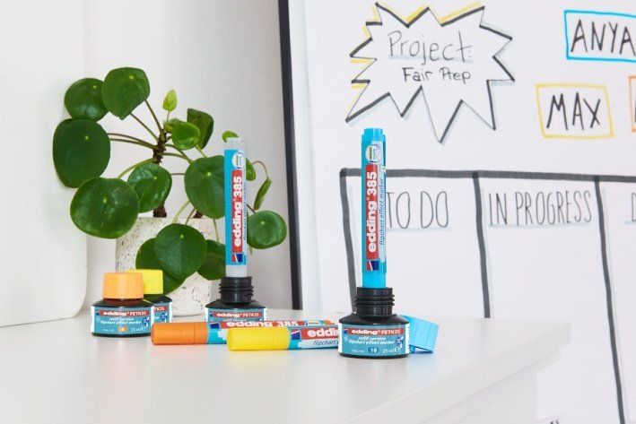 Stínovací popisovac edding 385 je predevším urcený pro stínování ci zvýraznení nápadu a témat pri prezentacích - zlepšuje viditelnost duležitých faktu a záveru. Inkoust byl speciálne vyvinut pro flipchartový papír a pro prezentacní karty, je však vhodný i pro nejruznejší kreativní cinnosti na papíru vyšší gramáže. Inkoust na vodní bázi nabízí intenzivní barvy. Flexibilní hrot umožní stínování a akcentování textu, grafu ci nácrtku. Cap-off inkoust nevyschne i nekolik dnu, pokud je popisovac ponechán bez vícka. Napsaná stopa rychle zasychá a nepropíjí se. Popisovac je znovu naplnitelný (náhradní inkoust edding FETK 25), prodloužením jeho životnosti pomužete snížit množství komunálního odpadu. Telo popisovace je vyrobeno z 55 % z recyklovaného plastu. Klip na vícku brání skutálení popisovace. Flexibilní kaligrafický hrot. Šíre stopy: 1-5 mm. Sada obsahuje 4 výrazné barvy: žlutou, oranžovou, tyrkysovou a stríbrošedou. Vyrobeno v Nemecku.