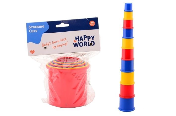 Stohovací kelímky Happy World jsou plastové kelímky pro nejmenší děti. Balení obsahuje 10 ks různě velkých kelímků.