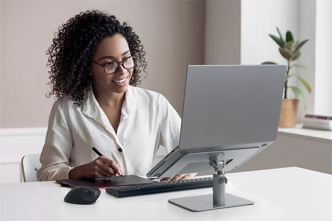 Univerzální stolní stojan na notebook vám umožní umístit notebook do pohodlné výšky a zároveň snížit nepořádek na pracovní ploše.